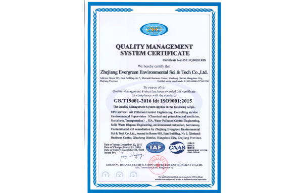公司擁有環境保護部環境影響評價資質、浙江省建設項目環境監理甲級資質、浙江省污染防治工程設計能力證書、浙江省污染防治工程總承包能力證書,浙江省污染場地環境風險調查評估能力證書,入圍浙江省重點行業企業用地土壤污染狀況調查專業機構推薦名錄,同時,公司擁有污染防治工程設計多項專利和計算機軟件著作權等。