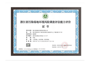 浙江省污染場地環境風險調查評估能力評價證書